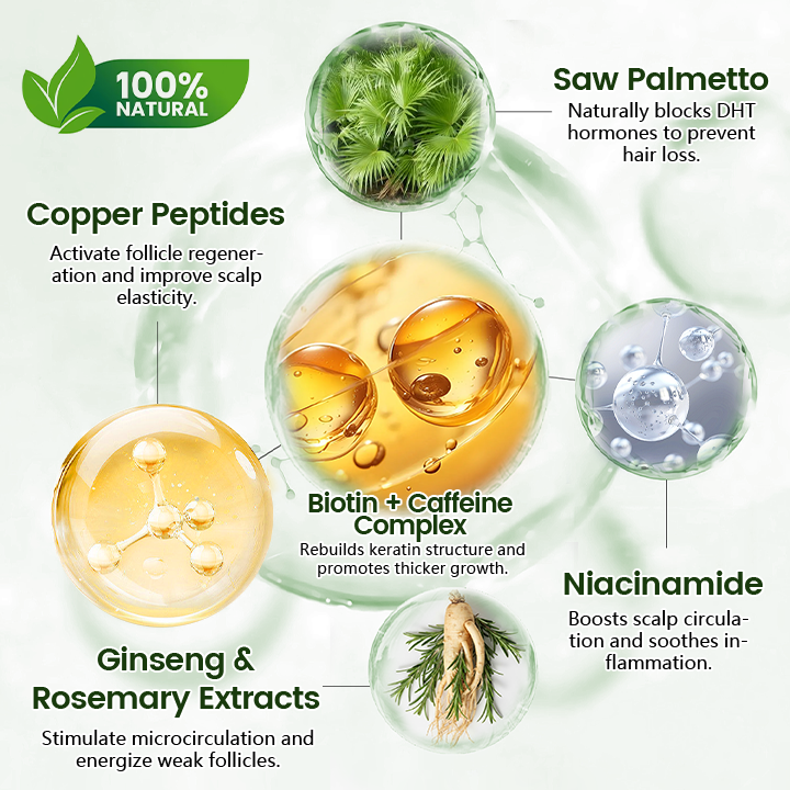 Saw Palmetto Extract – Naturally blocks DHT hormones to prevent hair loss.