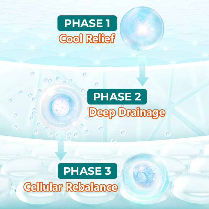 Timilk® works through a three-phase system combining instant cooling, active drainage, and long-term cellular balance.